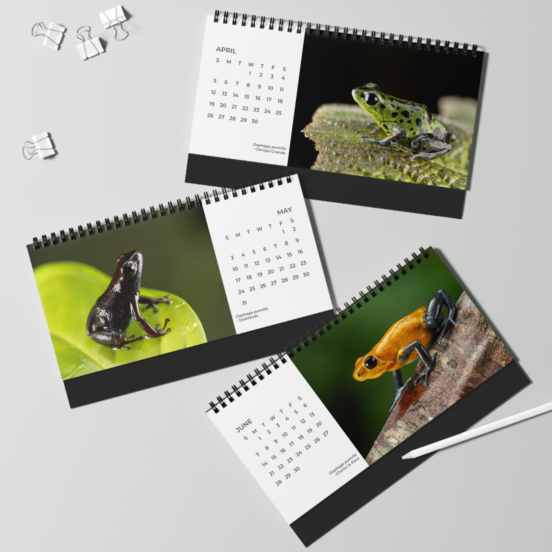 The compact size of our pumilio desktop calendar makes it convenient for placing on a desk, shelf, or any other small space. We hope you enjoy the colors and variability of this small amphibian throughout the year!